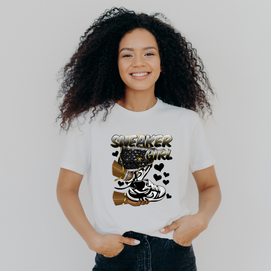 This stylish "Sneaker Girl" shirt is a must-have for any footwear enthusiast. Crafted from soft, breathable cotton, it offers all-day comfort and a relaxed fit that complements any casual outfit. The design features bold, playful typography that proudly proclaims "Sneaker Girl" across the chest, making it a perfect choice for anyone who loves to showcase their passion for sneakers. Available in a variety of colors, this versatile tee can be effortlessly paired with jeans, shorts, or even a trendy skirt, making it an essential addition to your wardrobe. Whether you're heading to a sneaker convention, hanging out with friends, or just lounging at home, this shirt is sure to make a statement and celebrate your unique style.